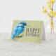 Carte de martin pêcheur d'oiseau bleu d'anniversaire. L'oeuvre est reproduite à partir de l'aquarelle originale par Sarah Trett.