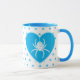 Comme c'est romantique ! Un coeur avec une belle grosse araignée. Belle palette de couleurs bleu clair.