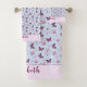 Un ensemble de serviettes de bain mignonnes avec des papillons roses et poussiéreux sur un arrière - plan bleu en font un ajout unique, girly, à une salle de bain décorée pour les filles. Beaucoup d'espace pour customiser votre nom sur le bord de l'ourlet rose. Parfait pour un ajout amusant à une salle de bain pour enfants ou une salle de bain pour femmes. Grand comme un cadeau d'amant papillon pour un nouveau propriétaire ou quelqu'un qui déménage dans leur premier appartement.