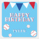 Bleu mou Kids Boy Baseball Anniversaire Sticker // Beau bâton d'anniversaire de baseball pour les enfants. Le design a des balles de baseball et des drapeaux de bottes en rouge, blanc et bleu sur un arrière - plan bleu. Personnalisez cet autocollant de fête d'anniversaire avec le nom d'un enfant. Idéal pour un garçon qui aime le baseball et d'autres sports.
