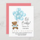 Bleu mignon Oh baby shower invitation avec ours en peluche et ballons