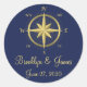 Autocollants de mariage bleu marine avec boussole en or et texte personnalisable
