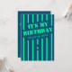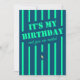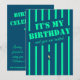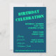 Une magnifique carte d'invitation bleue minimaliste ornée de rayures turquoises néon et d'une bougie. Toutes les phrases de texte peuvent être customisées.