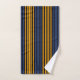 Bandes verticales en noir, bleu et jaune profond/orange.