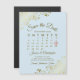 Cette belle carte magnétique bleu pâle et or est une merveilleuse façon de faire savoir à votre famille et à vos amis de sauver la date de votre prochain mariage. Il dispose d'un design agréable avec un calendrier personnalisé où vous pouvez mettre un coeur autour de votre date de mariage. Parfait pour coller sur la porte du réfrigérateur ! Les coins de la carte sont ornés de boucles dorées et de tourbillons. Elégant et élégant cet aimant est sûr de plaire!
