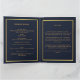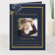 Un programme élégant de 4 pages. Un arrière - plan bleu foncé, un cadre en faux or, des fleurs bleues et de l'espace pour votre photo à l'avant. Personnalisez et ajoutez le nom, les dates et votre texte.