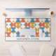 Élevez votre style professionnel avec notre tapis de bureau rétro moderne du milieu du siècle avec un motif vintage captivant des années 70 ou 60. La suite présente un design unique avec des formes demi-cercle et pétoncle dans des tons vifs de bleu, d'orange et de jaune. Personnalisez votre espace de travail en ajoutant votre nom à la ligne désignée, créant un look personnalisé et distingué qui est le vôtre.