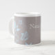 Beurre doux et dainty Mug floral Jumbo avec un arrière - plan gris poussiéreux et muet papillons bleu clair et ornements de vigne florale. Cette tasse florale élégante est parfaite pour boire votre boisson chaude préférée avec une touche de flair girly. Facile à customiser, ajoutez simplement le texte personnalisé de votre choix dans les champs de texte fournis. Cliquez sur le bouton "Customiser" pour trouver d'autres options de personnalisation.