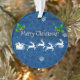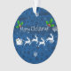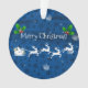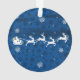 Ajoutez une touche de fantaisie à votre sapin de Noël avec un ornement de pinceau et de rennes à Père Noël Bleu. La décoration ornementale présente un traîneau à Père Noël orné de baies sèches et tiré par son renne contre un arrière - plan bleu aux flocons de neige tombants. Autres cadeaux et objets de vacances disponibles avec ce design aussi.
