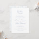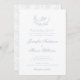 Faire-part de mariage classique floral bleu Dusty avec un monogramme botanique dessiné à la main et joliment détaillé avec des feuilles délicats et les initiales de la mariée et du marié.
