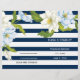 Fleurs rayures bleu foncé cérémonie moderne florale mariage et programme plié de fête avec élégante fleurs blanches et bleues deux tons avec feuilles verts sur un motif rayé à rayures bleu marine et blanc. Cette élégante modèle mariage contemporaine est entièrement personnalisable et est idéale pour un mariage de printemps ou d'été. Pliez-le au centre pour avoir un programme de mariage plié. Choisissez seulement ce type de papier-valeur comme il se plie bien.