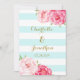 Bleu Rayures Fleurs Roses Invitations Mariage