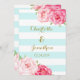 Cartes de modèle personnalisées faire-part de mariage en bleu clair aqua turquoise bleu ciel turquoise et rayures blanches motif avec rose fuchsia rose chaud fleurs vintages et style manuscrit or style vintage. Customisez ces invitations avec vos coordonnées de mariage. Disponible en produits assortis pour tous vos besoins mariages.