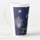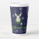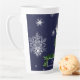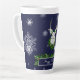 Profitez de votre café du matin ou de la fin de la saison des Fêtes avec une Mug Latte Reindeer Bleu. Le design de la musique est composé d'un renne festif portant une couronne de Noël ornée de baies saintes et de flocons de neige en chute et d'une boîte décorée de guirlandes de vacances avec le dicton "Prenez une tasse de joie". Autres cadeaux et objets de vacances disponibles avec ce design aussi.