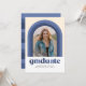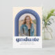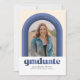 Ce faire-part amusant de graduation comporte une arche avec différentes nuances de bleu autour d'une seule photo. L'arrière de la carte dispose d'un motif à bande de coordination ainsi que d'un espace pour un message personnel ou des détails d'invitation pour une célébration de graduation.
