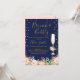 Un brunch sucré et une invitation à la douche à bulles avec des arrangements floraux, principalement roses, des points de feuilles d'or et une coupe de champagne sur un arrière - plan bleu foncé. L'en-tête est modifiable ce qui rend ce modèle très flexible. Ce design floral est une belle façon de préparer le terrain pour une douche nuptiale à venir.