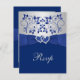 Cette jolie carte de réponse de mariage florale bleu royal et gris argenté comporte un ruban imprimé bleu et une paire de bijoux en diamant imprimés et des cœurs joints pailletés faux qui correspondent à l'invitation de mariage présentée ci-dessous. Le choix du papier est personnalisable. ****VEUILLEZ NOTER - tout sera imprimé tel qu'il apparaît sur votre écran. Je ne verrai pas votre invitation et Zazzle ne modifiera rien. Si vous avez besoin d'aide pour personnaliser cette carte, veuillez m'envoyer un e-mail AVANT de passer votre commande. Si vous avez besoin d'autres articles assortis, veuillez envoyer un e-mail à niteowlstudio@gmail.com.