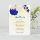 Romantique bleu royal & fleurs blanches avec carte de sièges mariage botanique feuille or. Les détails de la parties scintillant sont simulés.