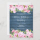 Avec de jolies roses roses sur un arrière - plan en bois rustique bleu et vos détails mariages personnalisés dans une élégante typographie. Conçu par Thisisnotme©