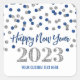 stickers personnalisés pour les années 2023 avec motif de confetti argent et bleu avec texte moderne en lettres.