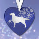 Ce joli ornement de vacances fera un merveilleux cadeau de conservation pour quiconque aime un Setter, que ce soit anglais, irlandais, ou Gordon! Il présente une silhouette argentée de Setter en face d'un jet de flocons de neige argentés ornés. L'image est placée sur un arrière - plan bleu profond dégradé. L'arrière de l'ornement a le même arrière - plan bleu et des flocons de neige, et un champ de texte pour vous de customiser. Belle !