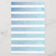 Joli, bleu blanc, aquarelle rayée arrière - plan pour un baby shower à thème pour bébé garçon. Un lapin bronzé apparaît juste au-dessus du nom d'honneur.