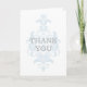 Simple avec élégance chic décrit ce Carte de remerciements subtil Mariage damassé sophistiqué avec un arrière - plan damassé bleu clair. Cette carte pointue et classique est parfaite pour un mariage traditionnel et peut être facilement customisé avec vos détails mariages. Pour plus d'options de personnalisation, cliquez sur le bouton Customiser.