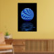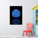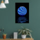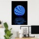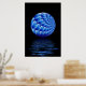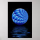 Art fractal évocateur d'une sphère florale bleue en spirale suspendue au-dessus du reflet des ondulations d'eau avec arrière - plan noir. Cette affiche ajouterait de façon frappante tout bureau, foyer ou maison moderne.