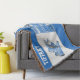 La couverture à franges de Cheerleader est faite en bleu ciel, gris clair et blanc. Les graphiques d'un pom bleu et gris clair, uniforme et mégaphones décorent le milieu, ainsi que le texte en gras bleu graphique lisant GO TEAM. Personnalisez le texte blanc en gras, sur les côtés rayés bleus de la couverture, pour répondre à vos besoins. Idéal pour garder chaud, sur les gradins, et comme un jeton pour votre lit.