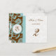 Monogramme Nouvelles tailles Elegant Vintage Aqua Blue Damask sur Mariage Brown Cartes Numéro de tableau