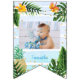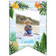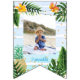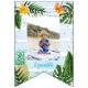 Drapeaux de Bunting avec vos photos customisées & conçu dans le style tropical avec feuilles tropicaux, ananas doré, jaune floral et arrière - plan bleu.