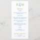 Bleu Vert clair Simple Monogramme Menu Mariage