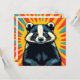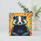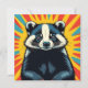 Carte mignonne avec un badger pop art sur elle dans un dessin animé pop art style livre comique et le côté arrière est vide.