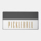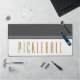 Ce design moderne et élégant est doté d'un bloc de couleur gris foncé et éclatant, assorti d'une rayure flottante contre un arrière - plan blanc et croustillant. Le texte PICKLEBALL, blanc, fin, brun doré, dans la moitié inférieure blanche peut être personnalisé.