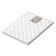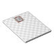 Bloc-notes de 5,5 po x 6 po avec l’image d’un damier gris et blanc et l’image vintage d’Alice au pays des merveilles dans la cour de la Reine des Coeurs avec cadre en damier noir et blanc sur un arrière - plan de cartes à jouer en rouge. Voir la collection complète du Bloc-notes Wonderland dans les TOUCHES SPÉCIALES | Section Favoris.