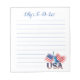 America Flag American USA List Bloc-notes, feux d'artifice bleu, rouge et blanc et drapeau américain sur un arrière - plan bleu avec la Statue de la Liberté pour célébrer le Jour de l'Indépendance. Joyeux 4 juillet, Retournez le dos de notre invitation de vacances patriotique d'été pour voir un retour correspondant. Stylish America Flag American USA List Bloc-notes pour un barbecue de la journée commémorative, un biscuit 4 juillet, une fête du travail ou toute autre fête à thème patriote. America Flag avec un design de coeur rouge, blanc et bleu peut être personnalisé avec votre nom et votre texte. Des rayures rouges et blanches et des étoiles blanches sur un arrière - plan bleu marine. conçu dans un style de script blanc magnifiquement écrit, créez votre propre bloc-notes customisé. Personnalisez-le avec votre nom ou faites plusieurs copies pour différentes listes (courses d'épicerie, listes de vérification à faire, notes, rappels, messages spéciaux, etc.) et retirez les lignes pour un bloc vierge - votre choix. Cela ferait une faveur élégante à une fête ou un petit cadeau pour une fête d'anniversaire, demoiselles d'honneur, douche, remise des diplômes, chauffage au foyer, Fête des mères, Fête des grand-mères, Noël, ou "juste parce que.", Les étoiles représentent les États-Unis, accessoires, et cadeaux. Montrez votre patriotisme aux États-Unis le jour 4 juillet ou commémoratif ou lors d'un événement sportif.