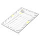 Baby shower Eléphant Jaune Douce et Gris - Voeux pour Baby Notepad. 100% Personnalisable. Prêt à remplir dans la ou les cases ou Cliquez sur le bouton PERSONNALISER pour ajouter, déplacer, supprimer, redimensionner ou modifier une police ou un graphique. Fabriqué avec un vecteur haute résolution et/ou des graphiques numériques pour une impression professionnelle. REMARQUE : (IL S'AGIT D'UNE IMPRESSION. Toutes les conceptions de produits zazzle sont des "impressions" sauf indication contraire dans la zone "A propos de ce produit") Le design sera imprimé EXACTEMENT comme vous le voyez à l'écran et sur le produit...par conséquent, assurez-vous que lorsque vous effectuez vos modifications sur le redimensionnement d'un graphique ou d'un texte qui s'insère correctement dans les zones et que votre orthographe et votre libellé sont ceux qui vous plaisent dans la taille, la couleur et la police. Si vous avez des questions sur ce design, veuillez me contacter à l'adresse siggyscott@comcast.net ou visiter le lien de mon magasin : http://www.zazzle.com/designsbydonnasiggy?rf=238713599140281212 (Copier et Coller) Je serai heureux de vous aider. Merci pour le support et l'arrêt par mon magasin - DesignsbyDonnaSiggy. © Donna Siegrist