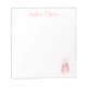 Ce joli bloc-notes rose est parfait pour la ballerine ou la danseuse de votre vie. Une police de script élégante est utilisée pour le nom, et des chaussures de ballerine rose ornent le coin inférieur droit du bloc-notes.