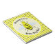 Ce formidable bloc-notes présente une image graphique d'une abeille jaune mignonne aux pattes noires et aux yeux béants. Il a un corps flou jaune avec des rayures noires et de mignonnes antennes noires sur sa tête floue. Ses délicates petites ailes ont un motif bleu pâle et marbré. Le design présente également de jolis tournesols jaunes. Le texte est personnalisable afin que vous puissiez inclure le nom de votre bébé et vous pouvez supprimer selon le cas pour annoncer le sexe du bébé. Le design est neutre pour le genre, il convient donc pour un bébé garçon ou une petite fille.