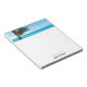 Un bloc-notes avec une photographie panoramique. Un océan bleu clair avec un palmier qui se balance au vent.
