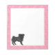L'illustration originale de Destei d'un mignon chien de race Carlin couleur manteau noir. La couleur arrière - plan moyenne est blanche idéale pour écrire des notes tandis que la couleur de bordure est rose avec un motif de formes cardiaques roses de différentes tailles.