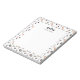 Le motif illustré de Destei de divers types de produits de maquillage comme les frontières. Le milieu a une couleur blanche arrière - plan. Il y a aussi des zones de texte personnalisables pour le titre du bloc-notes et pour un nom.