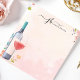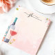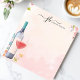 Ce bloc-notes personnalisé présente une bouteille de vin et un verre à l'aquarelle avec des fleurs pastel douces, créant un design élégant et sophistiqué. Parfait pour les amateurs de vin, les amateurs de divertissement et ceux qui apprécient la papeterie sophistiquée. Personnalisez le texte en haut pour une touche unique, ce qui le rend idéal pour le journalisme, la prise de notes ou comme cadeau.