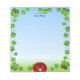 Joli coccinelle heureuse entourée de chance quatre clovers feuille Notepad. Idéal pour tous. La dame bug est un symbole universel de la bonne fortune ! Idéal pour les petits et les grands !