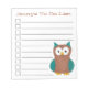 La conception du pavé de notes de liste de contrôle TO DO comporte une illustration originale d'un oiseau de chouette brun et bleu. Personnalisez simplement vos informations. De nombreux autres blocs-notes illustrés sont également disponibles dans cette boutique. Cette conception est également disponible sur d'autres produits. Ne vois-tu pas ce que tu cherches ? Vous avez besoin d'aide pour la personnalisation ? Contactez Rebecca pour avoir quelque chose conçu pour vous.
