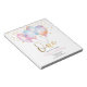 Budget, ballons d'aquarelle mignon, tons rose et or bloc-notes d'invitation de premier anniversaire. Chaque page est imprimée avec l'invitation.