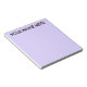 Bloc-Notes Personnalisé Lilas Pastel Simple, Unique et Épuré. Texte à l'Écriture Manuscrite Décontractée. Modèle de Bloc-Notes. Ajoutez votre prénom, nom de famille, initiales. Personnalisez pour votre usage personnalisé. Cliquez sur le bouton "Personnaliser" pour changer la couleur de fond, les styles de police et la couleur de la police.