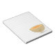 Un bloc-notes avec un caractère cantaloupe souriant, sur du papier blanc avec des lignes grises.
