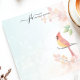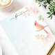 Ce bloc-notes personnalisé présente un cardinal rouge vibrant perché sur une branche délicate avec des feuilles d'automne douces, sur un fond pastel à l'aquarelle. Le design élégant et inspiré de la nature est parfait pour les amateurs d'oiseaux, les passionnés de faune et ceux qui apprécient la papeterie saisonnière. Personnalisez le texte en haut pour un touche unique, ce qui le rend idéal pour le journalisme, la prise de notes ou le cadeau.