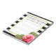 Faites vos tâches banales un peu plus amusantes avec ce carnet amusant pour les femmes qui dit "Que faire, mais d'abord, du vin." Utilisez-le pour noter votre idée épique lors de la planification de votre mariage ou anniversaire, ou utilisez-le pour noter les articles que vous avez oubliés la première fois, ou utilisez-le comme une liste de choses à faire. Les possibilités sont infinies. Le design se compose d'un cadre doré et d'un rose et d'un feuille d'aquarelle rose sur un arrière - plan rayé noir et blanc.